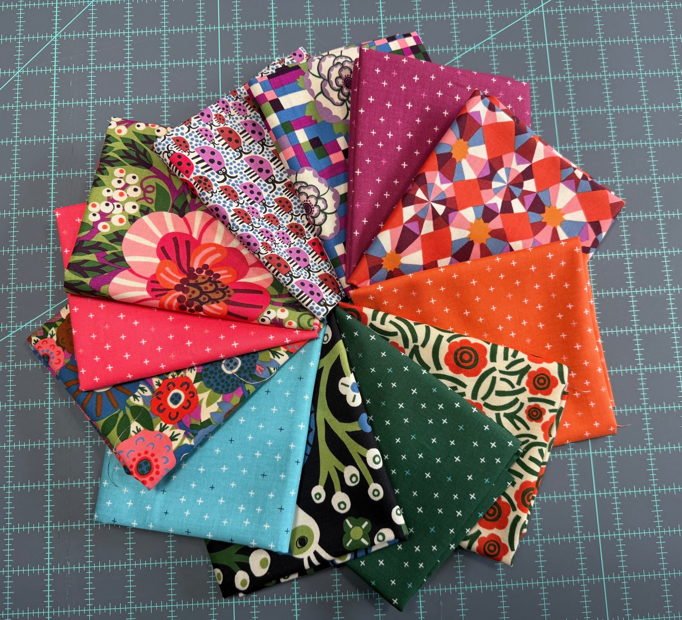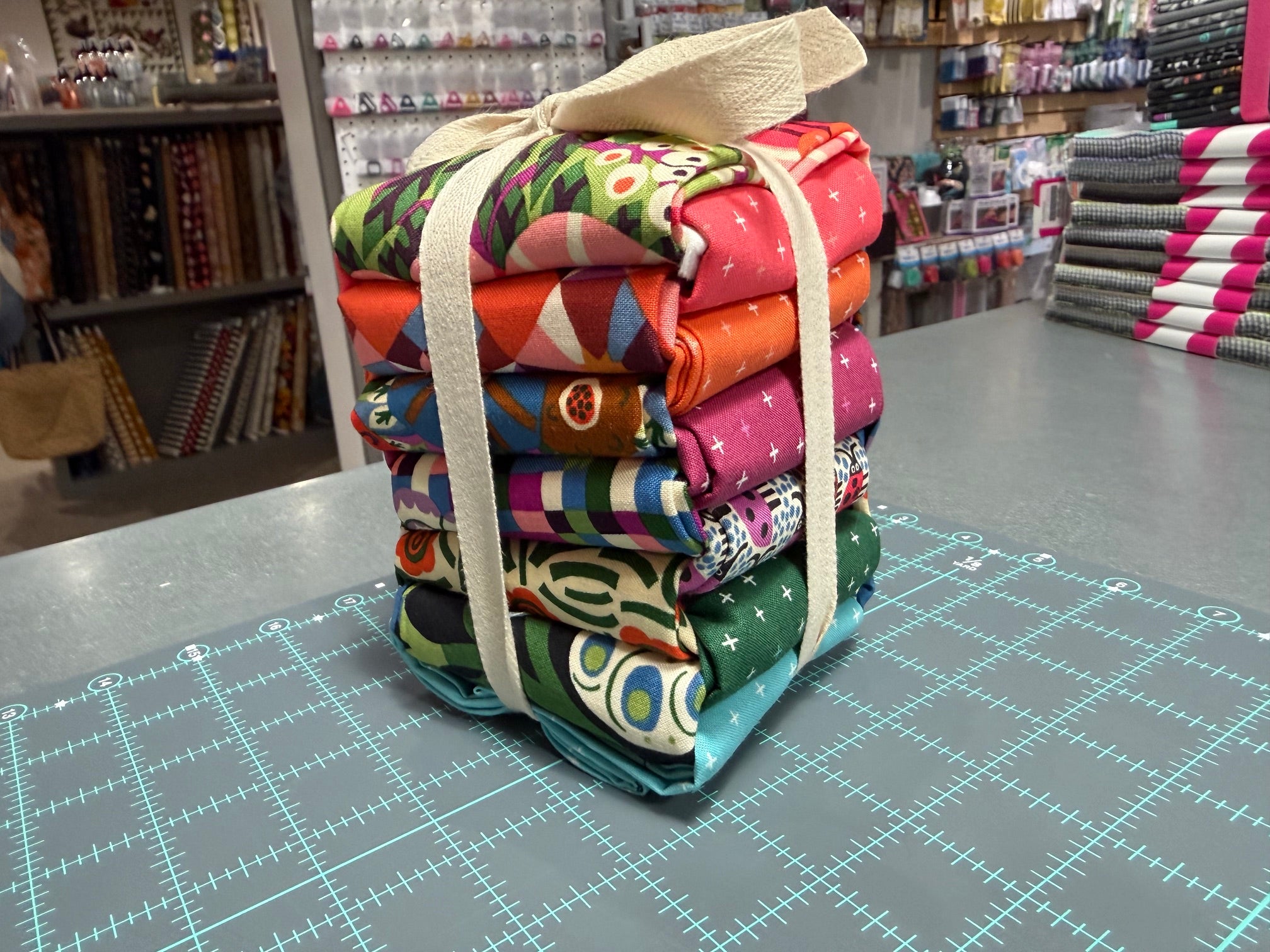 Curated Fat Quarter Bundle using The City of Dreams from Free Spirit Fabrics and designer Monika Forsberg as well as 5 Cotton and Steel Be Positive blenders.