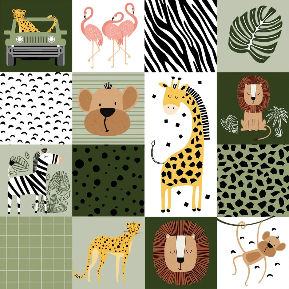 From 3 Wishes Fabric and designer JJ Design House is the really cute safari collection. 4 prints and 1 panel in the collection.
